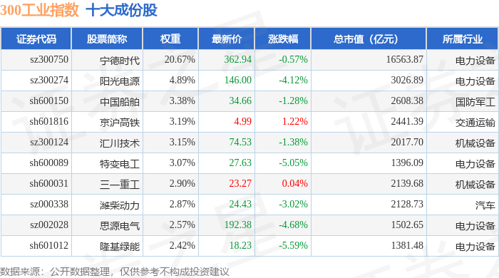 证券之星消息,2月5日,300工业(000910)指数报收于2604.44点,跌1.43%,成交1071.06亿元,换手率1.14%。当日该指数成份股中,上涨的有23家,东方电气以2.73%的涨幅领涨,下跌的有43家,晶盛机电以9.85%的跌幅领跌。