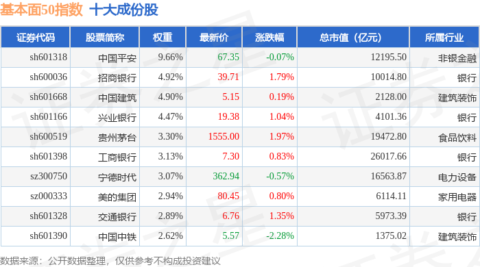 基本面50(000925)指数十大成份股详情如下: