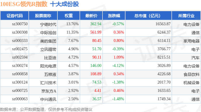 100ESG领先R(470030)指数十大成份股详情如下: