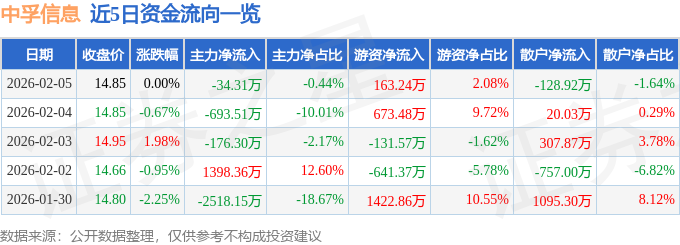 证券之星消息,截至2026年2月5日收盘,中孚信息(300659)报收于14.85元,上涨0.0%,换手率2.76%,成交量5.26万手,成交额7846.62万元。