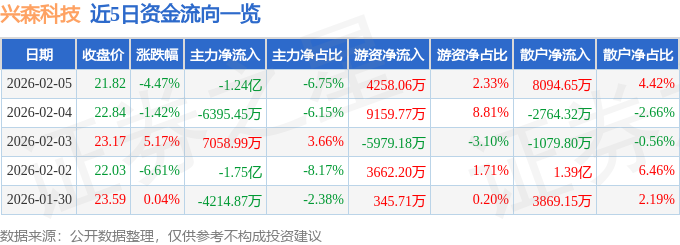 证券之星消息,截至2026年2月5日收盘,兴森科技(002436)报收于21.82元,下跌4.47%,换手率5.54%,成交量83.69万手,成交额18.3亿元。