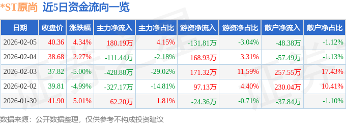 2月5日的资金流向数据方面,主力资金净流入180.19万元,占总成交额4.15%,游资资金净流出131.81万元,占总成交额3.04%,散户资金净流出48.38万元,占总成交额1.12%。