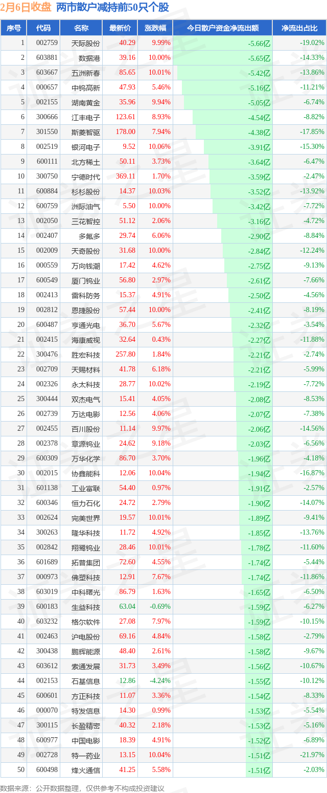 两市散户减持最多的前十只个股为: