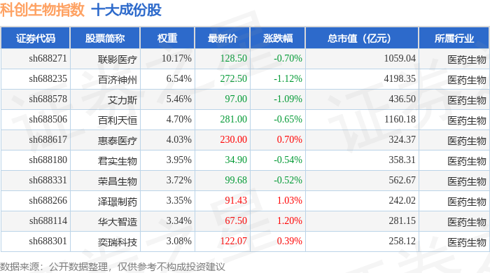 科创生物(000683)指数十大成份股详情如下: