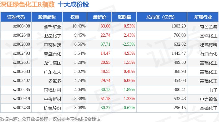 深证绿色化工R(470076)指数十大成份股详情如下: