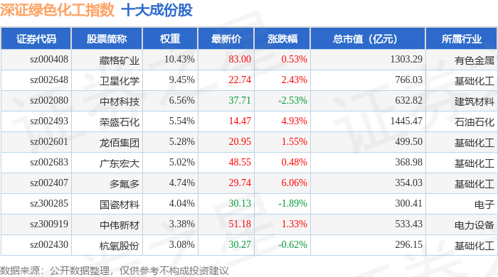深证绿色化工(970076)指数十大成份股详情如下: