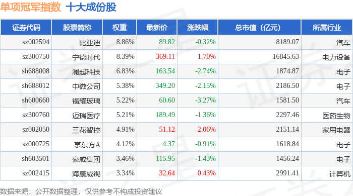 证券之星消息,2月6日,单项冠军(980150)指数报收于8468.3点,跌0.34%,成交1149.51亿元,换手率1.86%。当日该指数成份股中,上涨的有18家,深南电路以8.09%的涨幅领涨,下跌的有32家,福耀玻璃以3.27%的跌幅领跌。