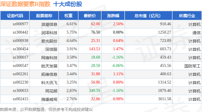 深证数据要素R(470053)指数十大成份股详情如下: