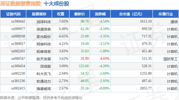 深证数据要素(970053)指数十大成份股详情如下: