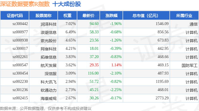 资金流向方面,深证数据要素R(470053)指数成份股当日主力资金净流出合计34.27亿元,游资资金净流入合计8.93亿元,散户资金净流入合计25.33亿元。成份股资金流向详情见下表: