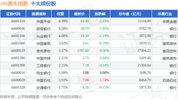 资金流向方面,180基本(000053)指数成份股当日主力资金净流出合计120.82亿元,游资资金净流入合计39.24亿元,散户资金净流入合计81.57亿元。成份股资金流向详情见下表:
