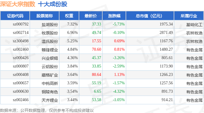 深证大宗(399639)指数十大成份股详情如下: