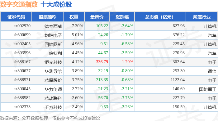 数字交通(980075)指数十大成份股详情如下: