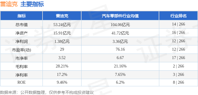 证券之星消息,截至2026年4月3日收盘,雷迪克(300652)报收于39.91元,较上周的41.45元下跌3.72%。本周,雷迪克3月31日盘中最高价报42.08元。4月3日盘中最低价报39.73元。雷迪克当前最新总市值53.24亿元,在汽车零部件板块市值排名141/238,在两市A股市值排名3150/5193。