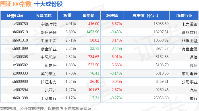 资金流向方面,国证300(399312)指数成份股当日主力资金净流入合计104.73亿元,游资资金净流出合计92.59亿元,散户资金净流出合计12.18亿元。成份股资金流向详情见下表: