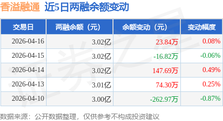 证券之星消息,4月16日,香溢融通(600830)融资买入312.26万元,融资偿还288.89万元,融资净买入23.37万元,融资余额3.02亿元,近20个交易日中有11个交易日出现融资净买入。