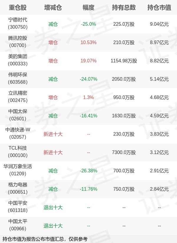 赵枫旗下基金合并股票持仓全景请见下表(数据截止至2026-3-31日):