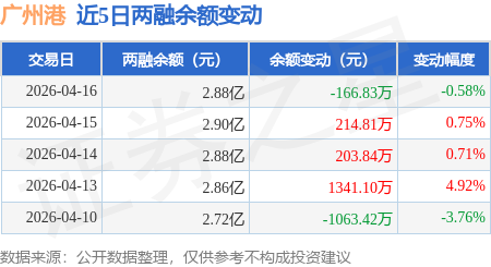 证券之星消息,4月16日,广州港(601228)融资买入472.96万元,融资偿还659.32万元,融资净卖出186.36万元,融资余额2.88亿元。