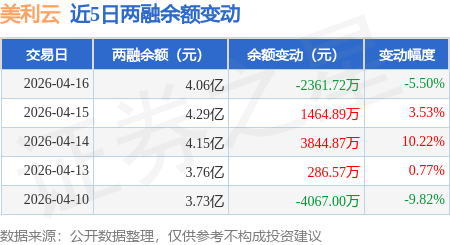 证券之星消息,4月16日,美利云(000815)融资买入9384.2万元,融资偿还1.18亿元,融资净卖出2367.18万元,融资余额4.05亿元,近20个交易日中有12个交易日出现融资净买入。