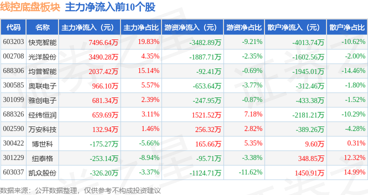 从资金流向上来看,当日线控底盘板块主力资金净流出2.41亿元,游资资金净流入7442.66万元,散户资金净流入1.66亿元。线控底盘板块个股资金流向见下表: