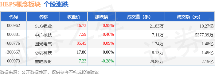 证券之星消息,4月17日HEPS概念板块较上一交易日上涨0.44%,东方钽业领涨。当日上证指数报收于4051.43,下跌0.1%。深证成指报收于14885.42,上涨0.6%。HEPS概念板块个股涨跌见下表: