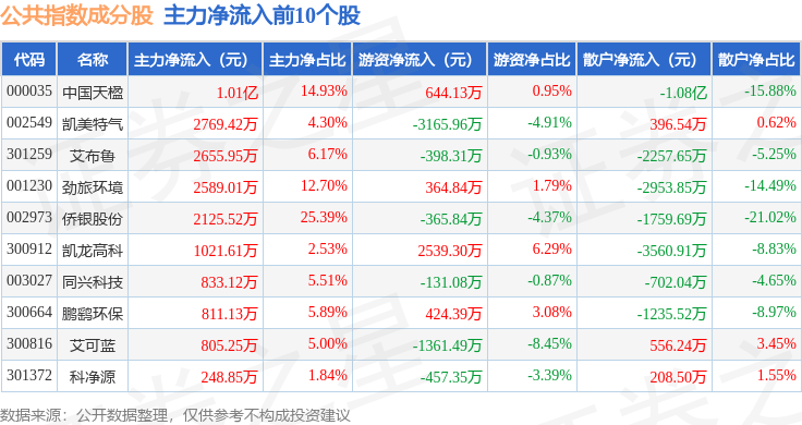 资金流向方面,公共指数(399244)成份股当日主力资金净流出合计2.23亿元,游资资金净流入合计4500.24万元,散户资金净流入合计1.78亿元。成份股资金流向详情见下表: