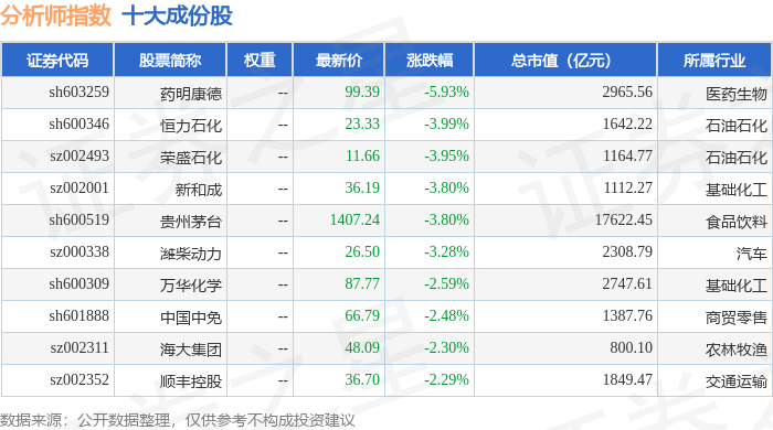 分析师指数(399354)十大成份股详情如下: