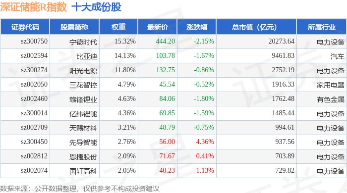 深证储能R(470036)指数十大成份股详情如下:
