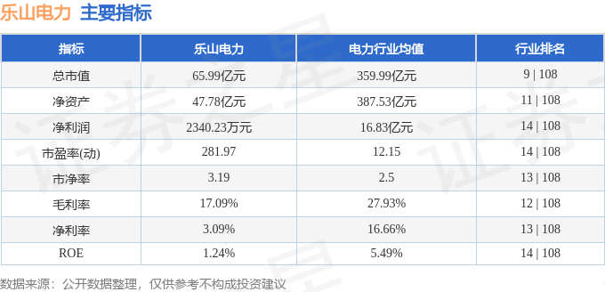 乐山电力2025年三季报显示,前三季度公司主营收入23.99亿元,同比上升3.27%;归母净利润7283.2万元,同比上升6.22%;扣非净利润6626.39万元,同比上升9.65%;其中2025年第三季度,公司单季度主营收入7.76亿元,同比上升6.18%;单季度归母净利润6492.89万元,同比上升9.46%;单季度扣非净利润5999.39万元,同比上升5.87%;负债率49.02%,投资收益2001.89万元,财务费用1476.72万元,毛利率17.09%。乐山电力(600644)主营业务:电力业务、天然气业务、自来水业务、新兴业务、服务业务五大业务。