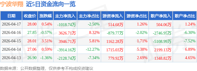 证券之星消息,截至2026年4月17日收盘,宁波华翔(002048)报收于28.0元,上涨0.54%,换手率2.07%,成交量14.67万手,成交额4.07亿元。