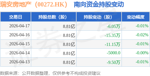 证券之星消息,4月17日南向资金减持6.05万股瑞安房地产(00272.HK)。近5个交易日中,获南向资金减持的有5天,累计净减持42.55万股。近20个交易日中,获南向资金减持的有20天,累计净减持4134.25万股。截至目前,南向资金持有瑞安房地产(00272.HK)8.81亿股,占公司已发行普通股的10.96%。
