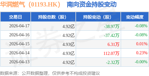 证券之星消息,4月17日南向资金减持38.97万股华润燃气(01193.HK)。近5个交易日中,获南向资金增持的有2天,累计净增持39.67万股。近20个交易日中,获南向资金减持的有17天,累计净减持968.86万股。截至目前,南向资金持有华润燃气(01193.HK)4.92亿股,占公司已发行普通股的21.25%。
