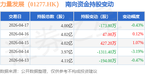 证券之星消息,4月17日南向资金减持173.8万股力量发展(01277.HK)。近5个交易日中,获南向资金减持的有3天,累计净减持1205.0万股。近20个交易日中,获南向资金减持的有10天,累计净减持1121.55万股。截至目前,南向资金持有力量发展(01277.HK)4.0亿股,占公司已发行普通股的4.74%。