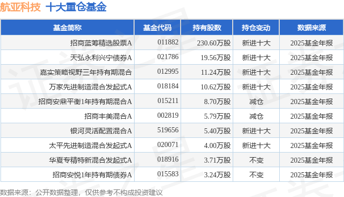 持有航亚科技最多的基金为招商蓝筹精选股票A,目前规模为25.98亿元,最新净值1.0023(4月17日),较上一交易日下跌0.68%,近一年上涨48.5%。该基金现任基金经理为王景。