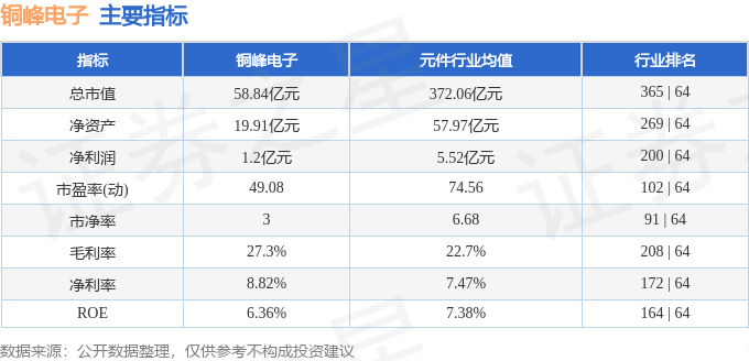 该股主要指标及行业内排名如下: