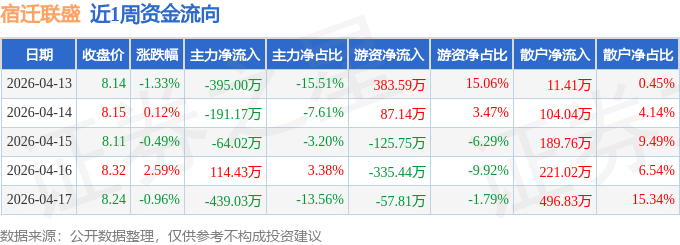 资金流向数据方面,本周宿迁联盛主力资金合计净流出974.79万元,游资资金合计净流出48.27万元,散户资金合计净流入1023.06万元。本周资金流向一览见下表: