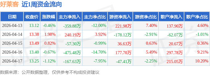 资金流向数据方面,本周好莱客主力资金合计净流出820.1万元,游资资金合计净流入210.77万元,散户资金合计净流入609.33万元。本周资金流向一览见下表:
