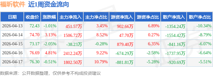 资金流向数据方面,本周福昕软件主力资金合计净流入6134.8万元,游资资金合计净流入273.66万元,散户资金合计净流出6408.46万元。本周资金流向一览见下表: