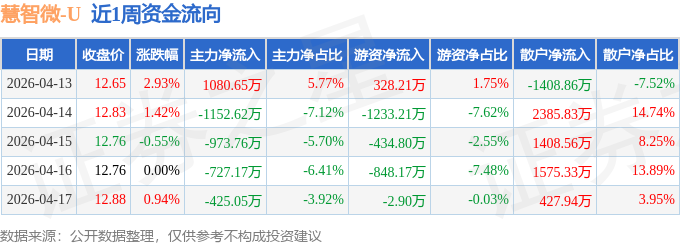 资金流向数据方面,本周慧智微主力资金合计净流出2197.94万元,游资资金合计净流出2190.86万元,散户资金合计净流入4388.81万元。本周资金流向一览见下表: