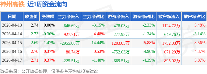 资金流向数据方面,本周神州高铁主力资金合计净流出2818.83万元,游资资金合计净流出974.47万元,散户资金合计净流入3793.3万元。本周资金流向一览见下表: