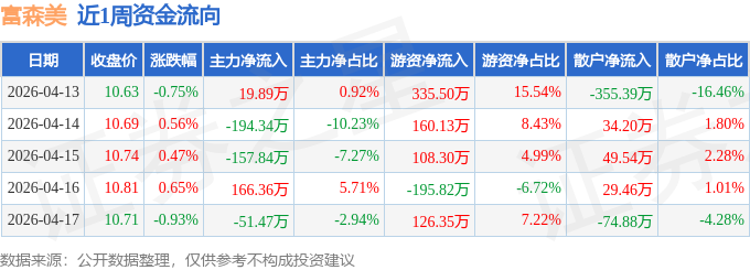资金流向数据方面,本周富森美主力资金合计净流出217.4万元,游资资金合计净流入534.47万元,散户资金合计净流出317.07万元。本周资金流向一览见下表: