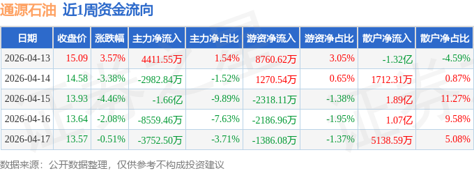 资金流向数据方面,本周通源石油主力资金合计净流出2.75亿元,游资资金合计净流入4140.0万元,散户资金合计净流入2.34亿元。本周资金流向一览见下表: