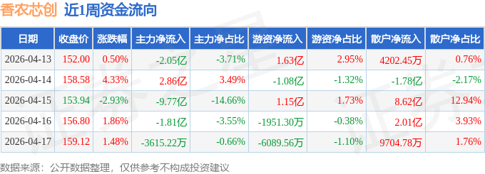 资金流向数据方面,本周香农芯创主力资金合计净流出11.14亿元,游资资金合计净流入9024.22万元,散户资金合计净流入10.24亿元。本周资金流向一览见下表: