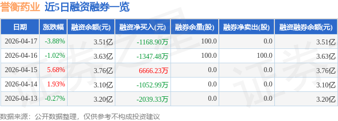 证券之星消息,截至2026年4月17日收盘,誉衡药业(002437)报收于3.72元,下跌3.88%,换手率8.05%,成交量167.97万手,成交额6.27亿元。