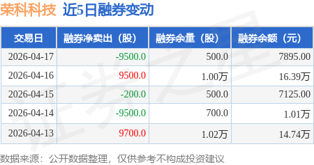 融券方面,当日融券卖出0.0股,融券偿还9500.0股,融券净买入9500.0股,融券余量500.0股。