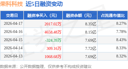 证券之星消息,4月17日,荣科科技(300290)融资买入7744.57万元,融资偿还5727.55万元,融资净买入2017.02万元,融资余额8.35亿元。