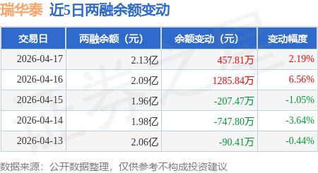 证券之星消息,4月17日,瑞华泰(688323)融资买入1884.25万元,融资偿还1426.44万元,融资净买入457.81万元,融资余额2.13亿元。