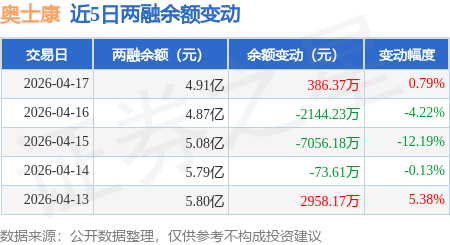 证券之星消息,4月17日,奥士康(002913)融资买入4850.9万元,融资偿还4466.92万元,融资净买入383.97万元,融资余额4.89亿元,近20个交易日中有12个交易日出现融资净买入。