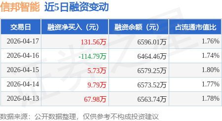 证券之星消息,4月17日,信邦智能(301112)融资买入341.37万元,融资偿还209.81万元,融资净买入131.56万元,融资余额6596.01万元,近20个交易日中有11个交易日出现融资净买入。