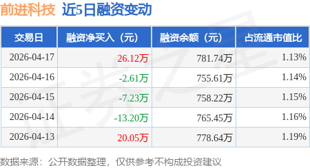 证券之星消息,4月17日,前进科技(920679)融资买入76.24万元,融资偿还50.12万元,融资净买入26.12万元,融资余额781.74万元。
